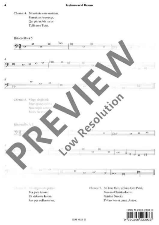 "Vespro della Beata Vergine - Instrumental Bassus" Sheet Music by Claudio Monteverdi