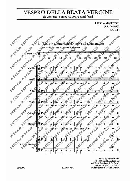"Vespro della Beata Vergine SV 206 - Piano Reduction" Sheet Music by Claudio Monteverdi