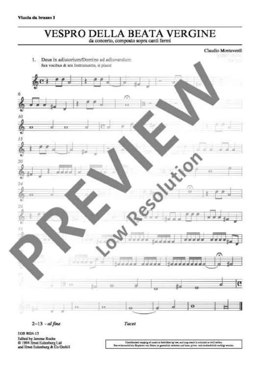 "Vespro della Beata Vergine - Viola Da Brazzo I" Sheet Music by Claudio Monteverdi