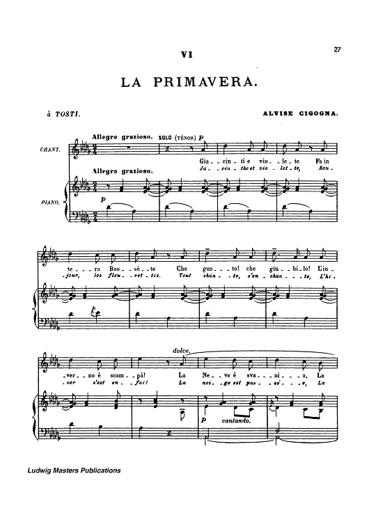 Digital Sheet Music for VI - La Primavera by Reynaldo Hahn, Maurice Léna, Alvise Cigogna scored for Piano/Vocal; id:444851
