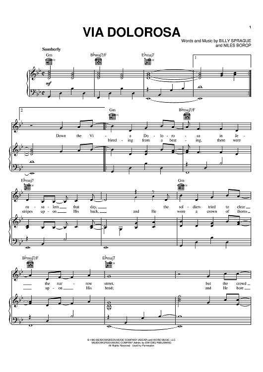Digital Sheet Music for Via Dolorosa by Niles Borop, Billy Sprague, Sandi Patty scored for Piano/Vocal/Chords; id:386650