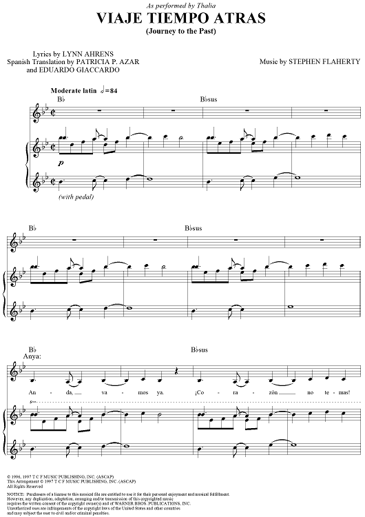 Digital Sheet Music for Viaje Tiempo Atras (Journey to the Past) by Stephen Flaherty, Lynn Ahrens, Thalia scored for Piano/Vocal/Chords; id:311753