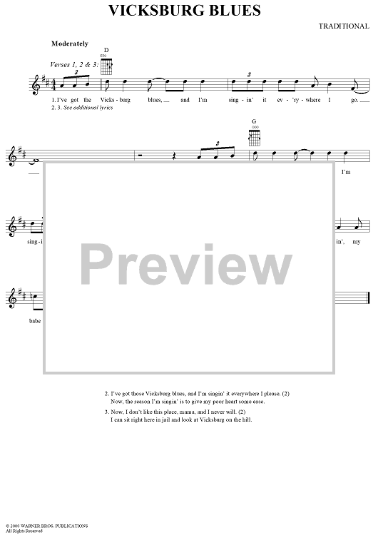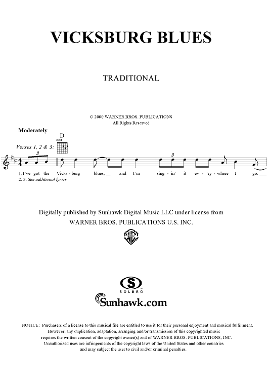 Digital Sheet Music for Vicksburg Blues by Traditional scored for Lead Sheet; id:292643