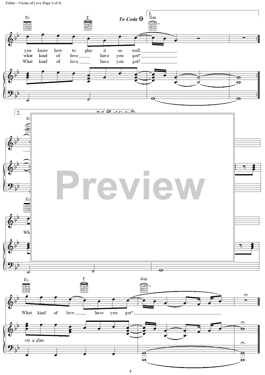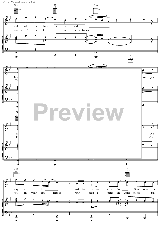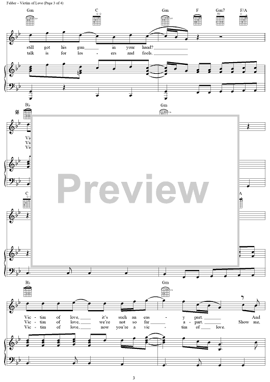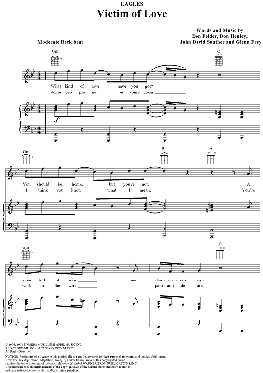 Digital Sheet Music for Victim of Love by Don Henley, Don Felder, J. D. Souther, Glenn Frey, Eagles scored for Piano/Vocal/Chords; id:112940
