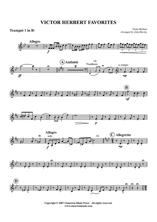 Digital Sheet Music for Victor Herbert Favorites - Trumpet 1 in B-flat by , John Bierley, Victor Herbert scored for Brass Quintet; id:365610