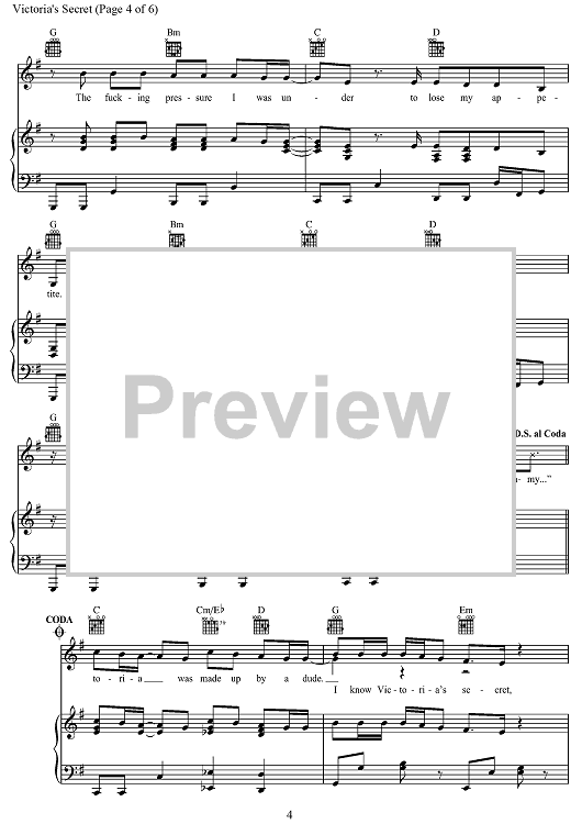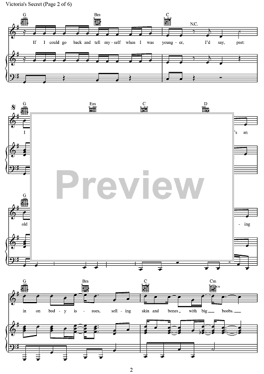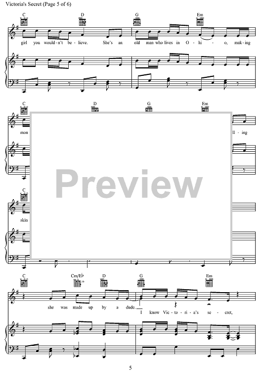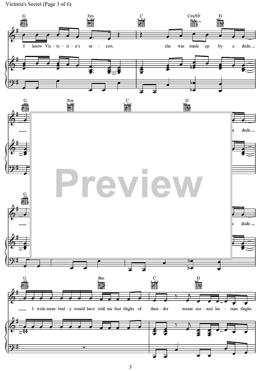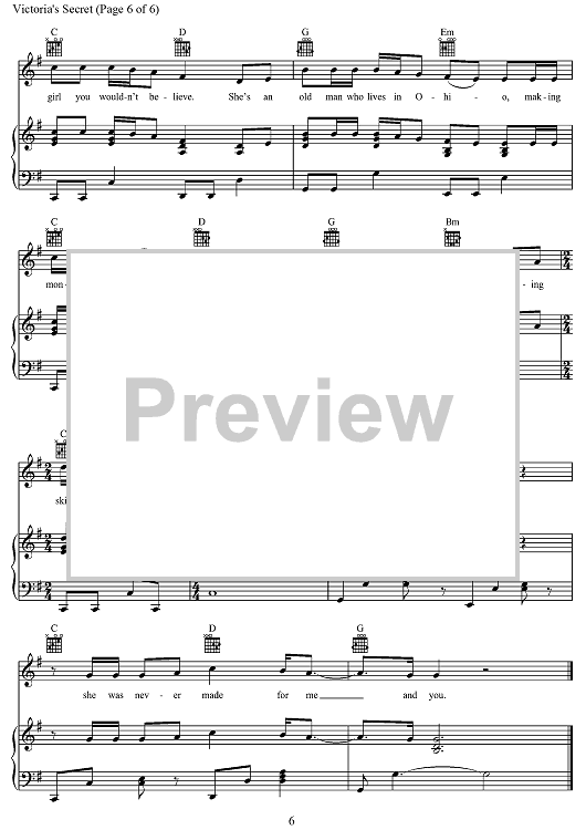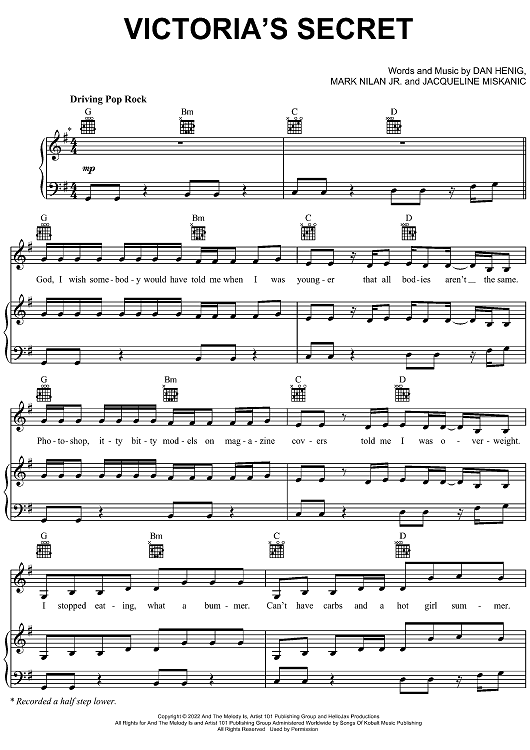 Digital Sheet Music for Victoria's Secret by Mark Nilan, Jax, Dan Henig scored for Piano/Vocal/Chords; id:497873