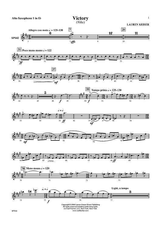 "Victory - Alto Sax 1" Sheet Music by Lauren Keiser