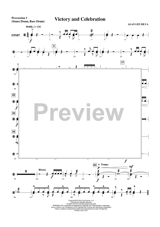 "Victory and Celebration - Percussion 1" Sheet Music by Alan Lee Silva
