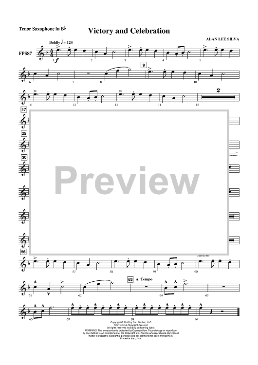 "Victory and Celebration - Tenor Sax" Sheet Music by Alan Lee Silva