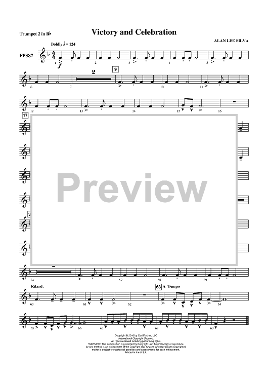 "Victory and Celebration - Trumpet 2 in Bb" Sheet Music by Alan Lee Silva