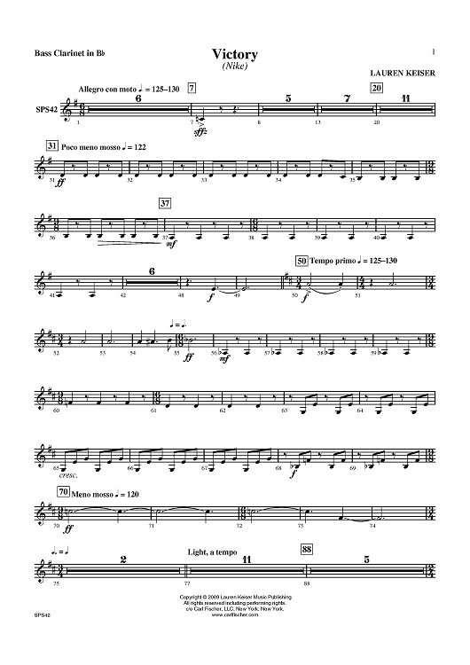 "Victory - Bass Clarinet" Sheet Music by Lauren Keiser