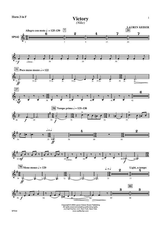 "Victory - Horn in F 3" Sheet Music by Lauren Keiser