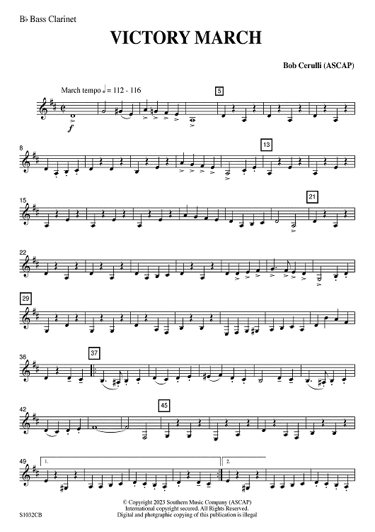 "Victory March - Bb Bass Clarinet" Sheet Music by Bob Cerulli