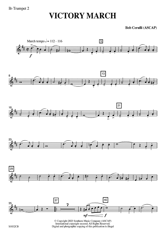 "Victory March - Bb Trumpet 2" Sheet Music by Bob Cerulli