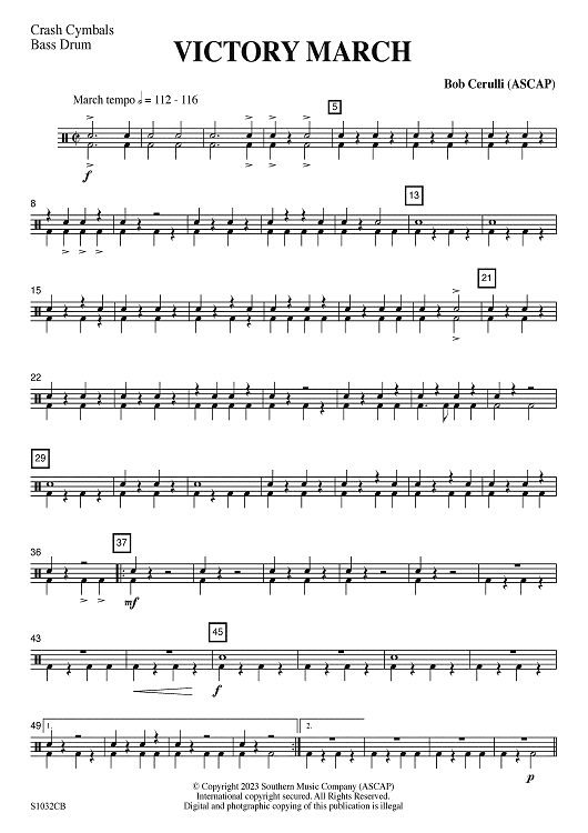 "Victory March - Crash Cymbal / Bass Drum" Sheet Music by Bob Cerulli