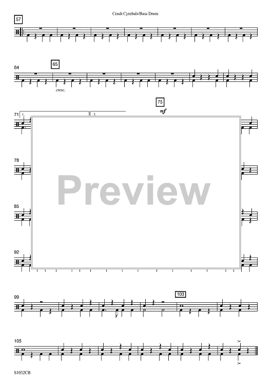 Digital Sheet Music for Victory March - Crash Cymbal / Bass Drum by Bob Cerulli scored for Concert Band; id:502522