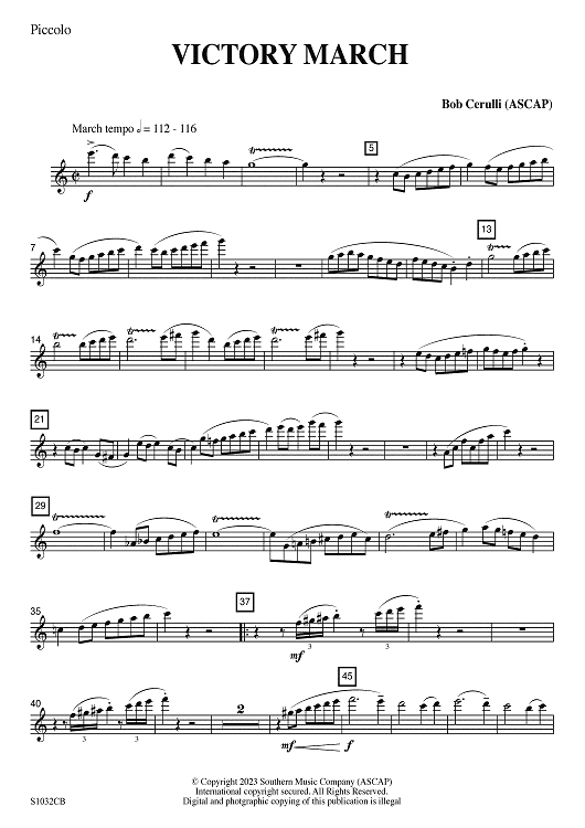"Victory March - Piccolo" Sheet Music by Bob Cerulli