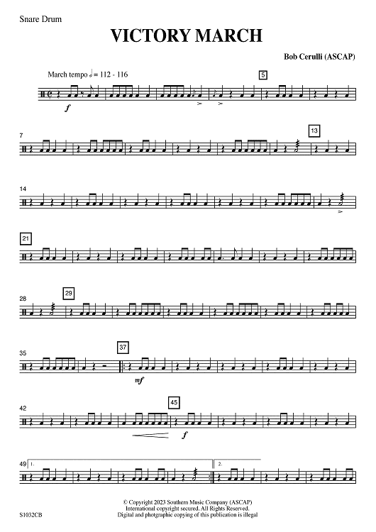 "Victory March - Snare Drum" Sheet Music by Bob Cerulli