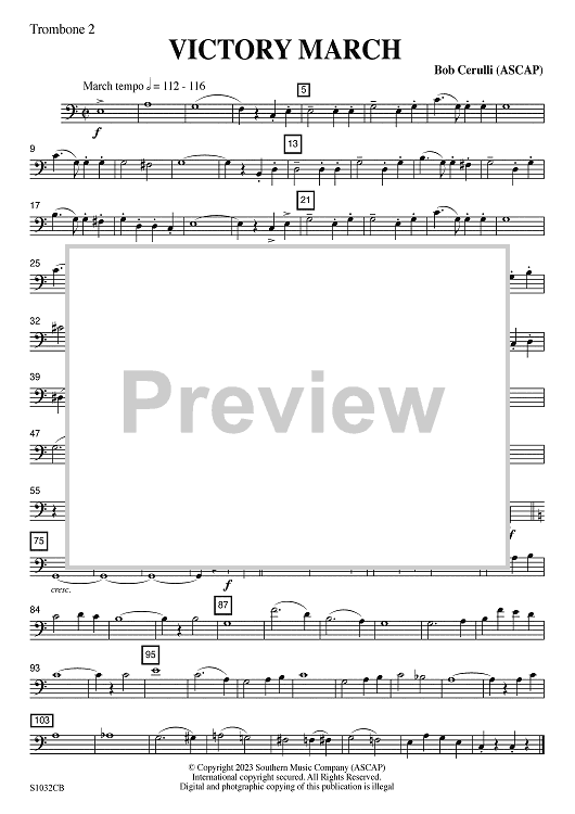 "Victory March - Trombone 2" Sheet Music by Bob Cerulli