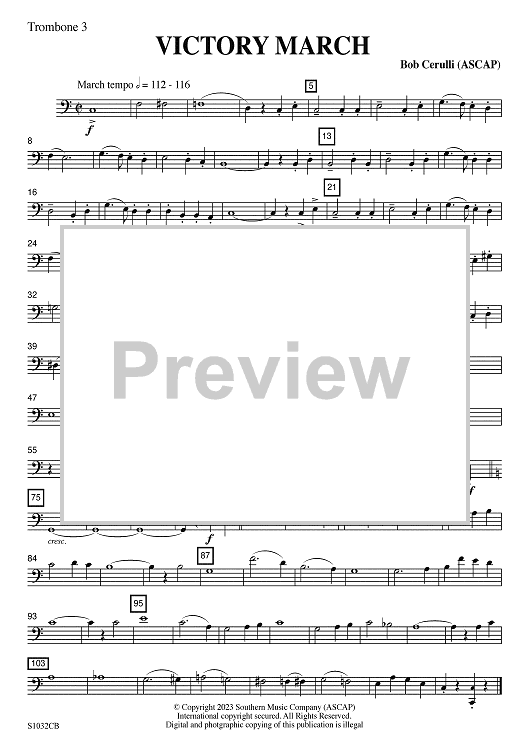 "Victory March - Trombone 3" Sheet Music by Bob Cerulli