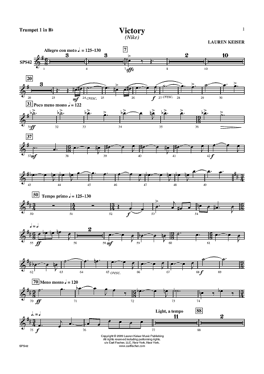 "Victory - Trumpet 1 in B-flat" Sheet Music by Lauren Keiser