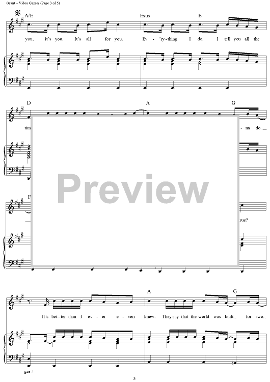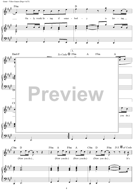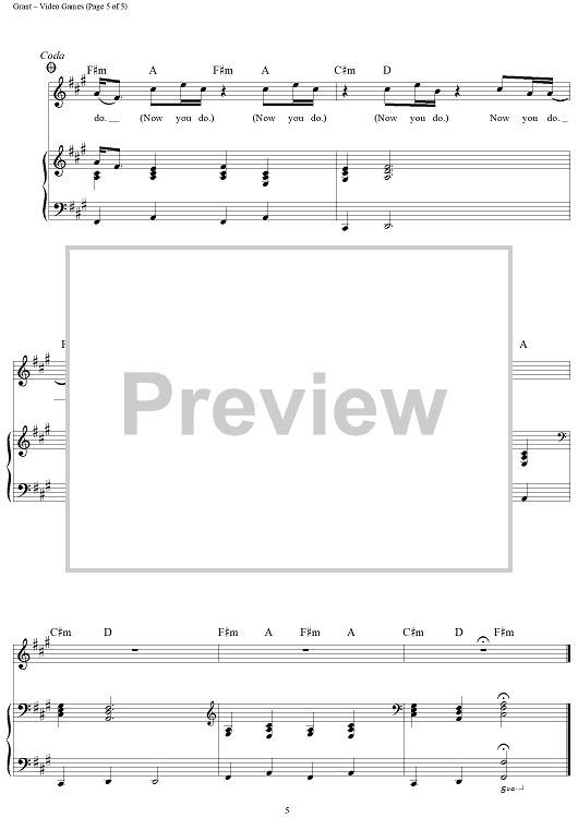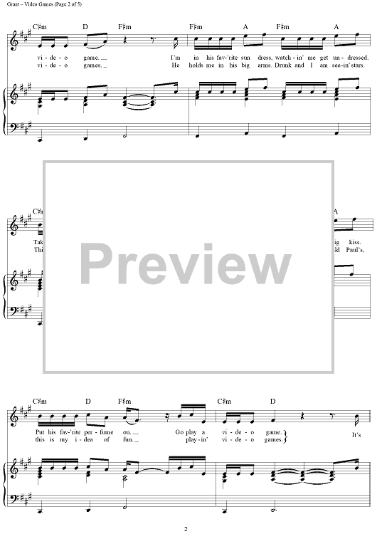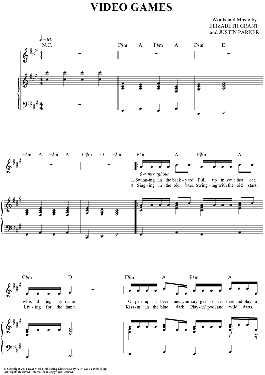 Digital Sheet Music for Video Games by Justin Parker, Elizabeth Grant, Lana Del Rey scored for Piano/Vocal/Chords; id:441783