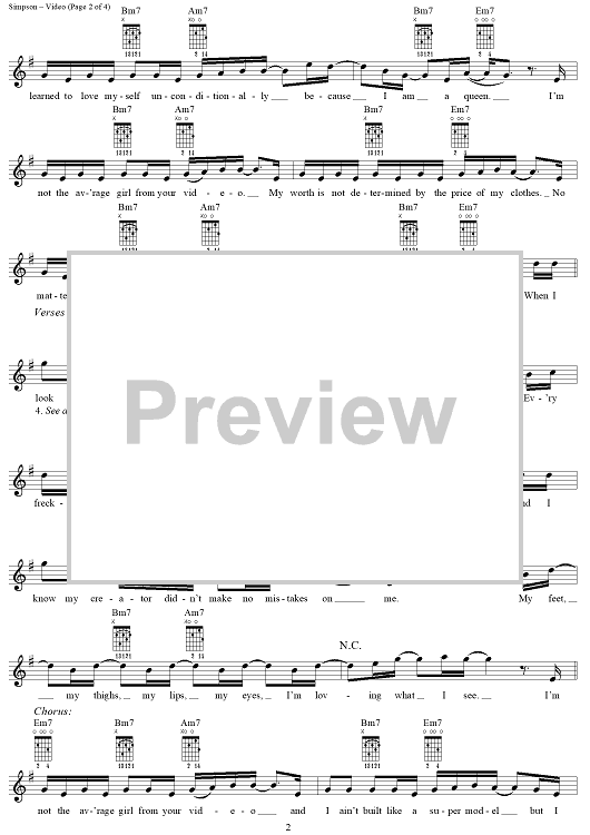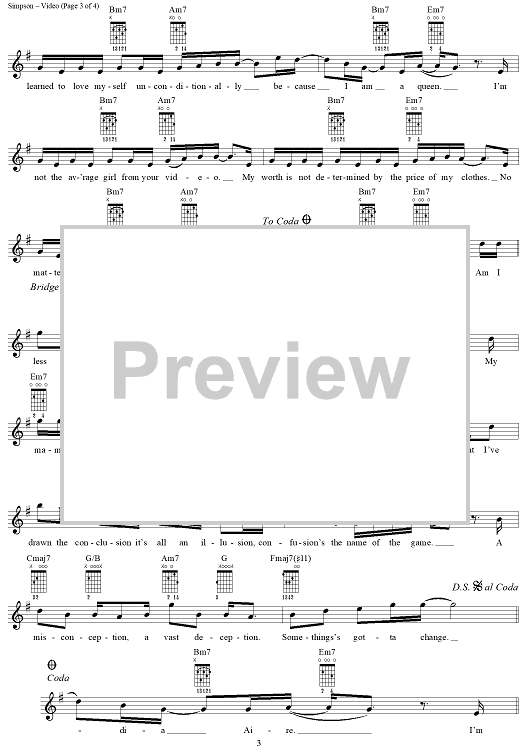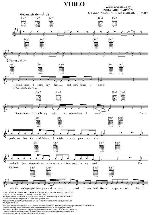 Digital Sheet Music for Video by India.Arie, Shannon Sanders, Carlos Broady scored for Easy Guitar/Vocal; id:287879