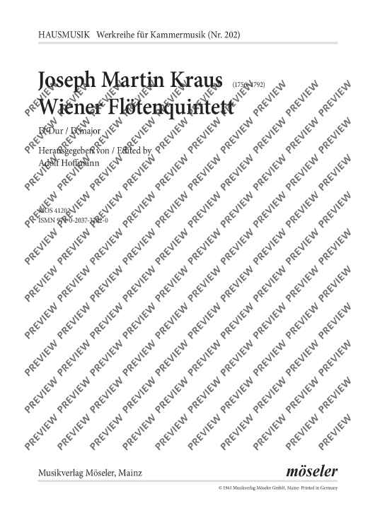 "Viennese flute quintet D major - Score and Parts" Sheet Music by Joseph Martin Kraus
