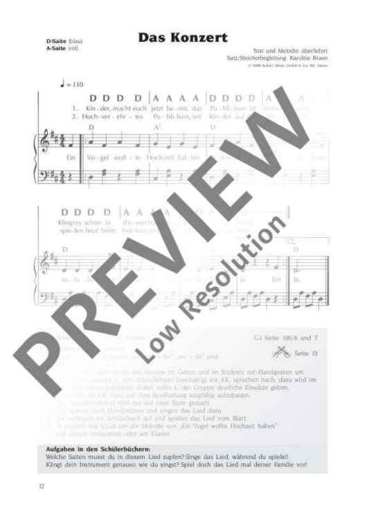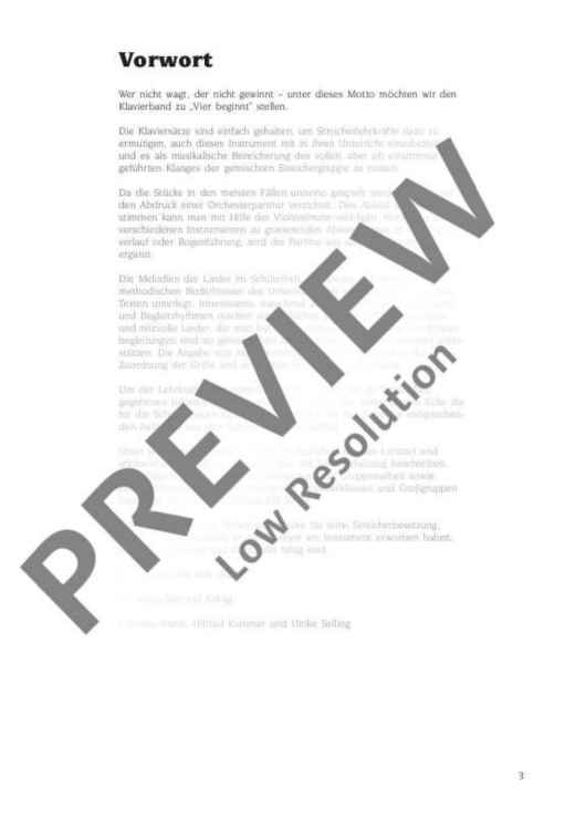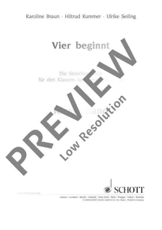"Vier Beginnt" was developed for string class teaching of pupils at primary school age but can also be used for individual lessons. Thanks to numerous new songs and instrumental pieces with pupil-oriented texts, a balance is created between the demands of the deep and high strings which allows a homogeneous learning tempo within the group. The appendix with performance literature for the beginning orchestra provides varied possibilities for concert performances at music and primary schools.