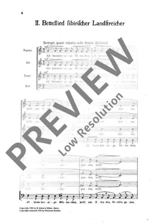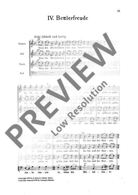 Digital Sheet Music for Vier Bettellieder - Choral Score by Hermann Reutter scored for Mixed Choir (satb); id:471547