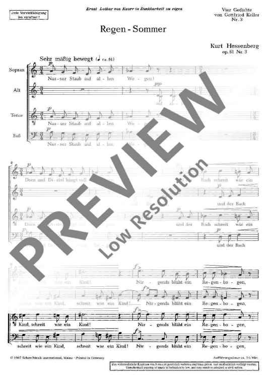 "Vier Gedichte - Choral Score" Sheet Music by Kurt Hessenberg