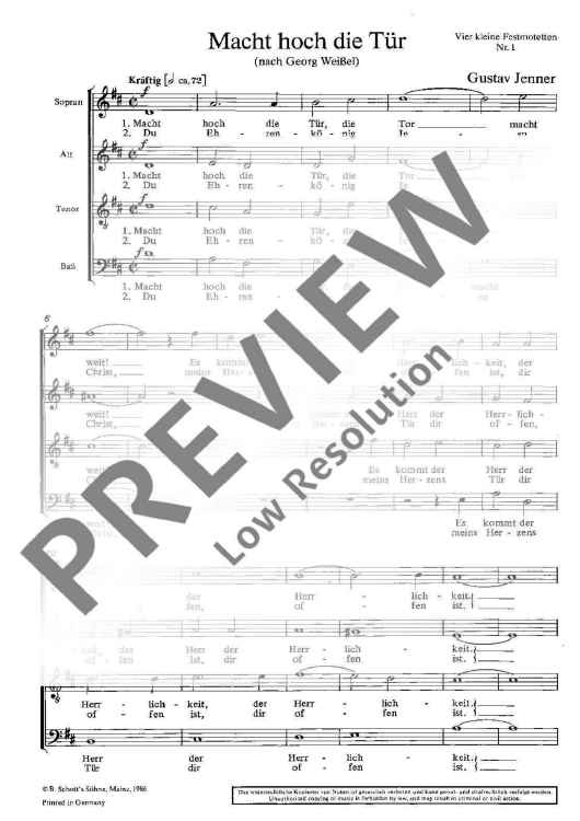 Digital Sheet Music for Vier kleine Festmotetten - Choral Score by Cornelius Uwe Gustav Jenner scored for Mixed Choir (satb); id:479412