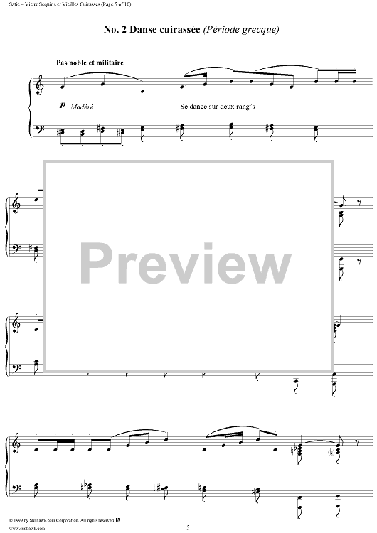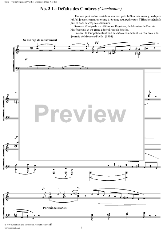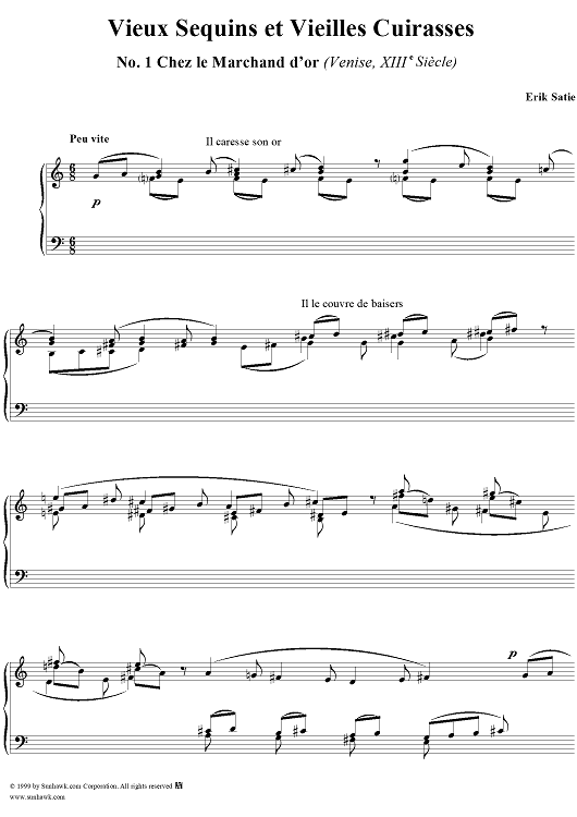 Digital Sheet Music for Vieux Sequins et vieilles Cuirasses by Erik Satie scored for Piano Solo; id:271752