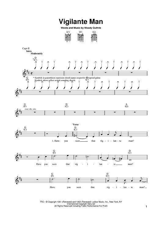 "Vigilante Man" Sheet Music by Woody Guthrie