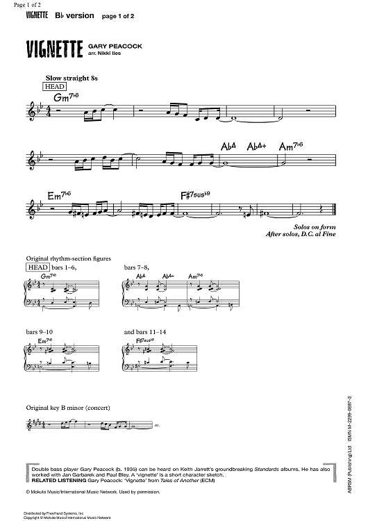 Digital Sheet Music for Vignette by , Nikki Iles, Gary Peacock scored for B-flat Lead Sheet; id:355639