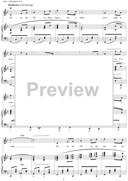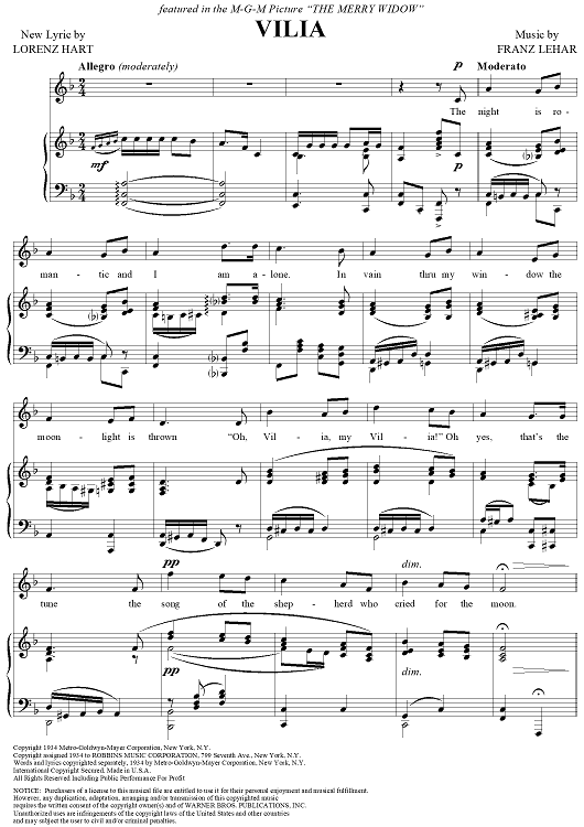 Digital Sheet Music for Vilia by Lorenz Hart, Franz Lehár scored for Piano/Vocal; id:356029