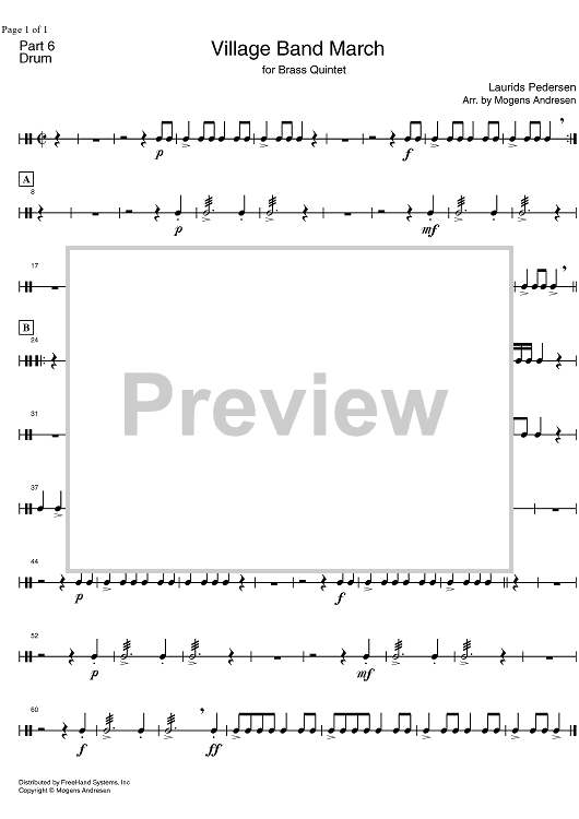 Digital Sheet Music for Village Band March by Mogens Andresen, Laurids Pedersen scored for Brass Quintet; id:328321