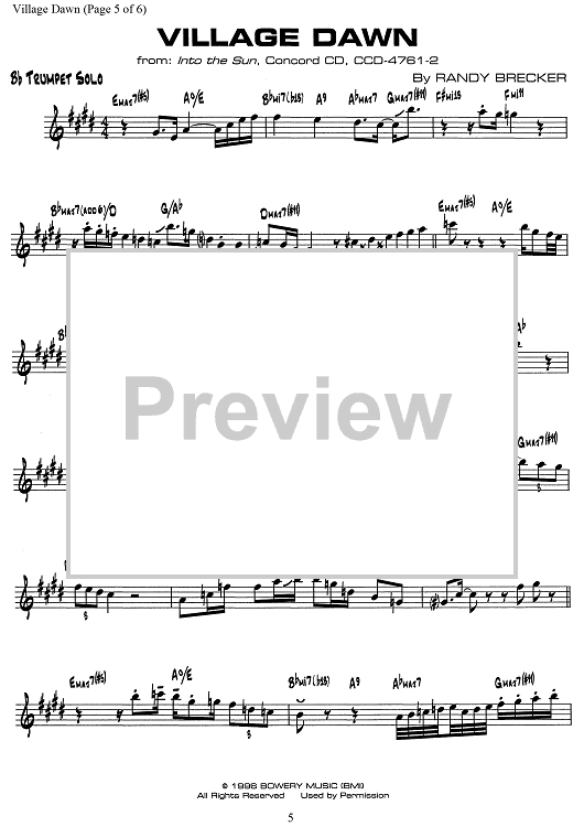 Digital Sheet Music for Village Dawn by Randy Brecker scored for Bb Trumpet/Piano; id:501996
