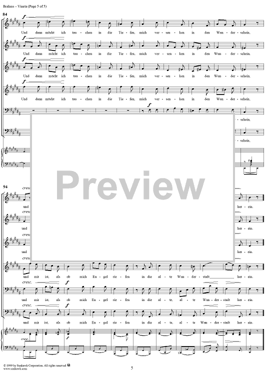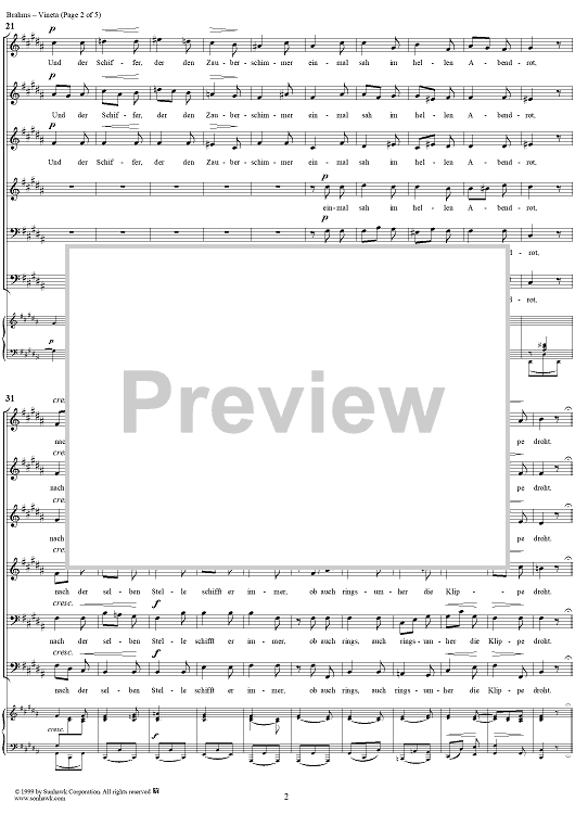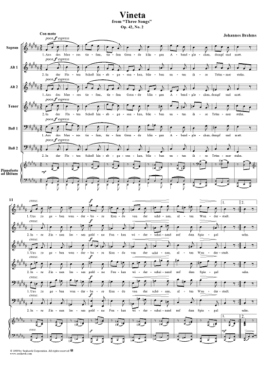 Digital Sheet Music for Vineta - No. 2 from "Three Songs" Op. 42 by , Johannes Brahms, Müller scored for Four-part Mixed Chorus; id:274134