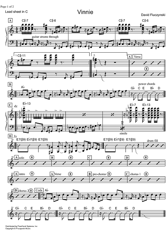 Digital Sheet Music for Vinnie by David Fiuczynski scored for Lead Sheet; id:326661