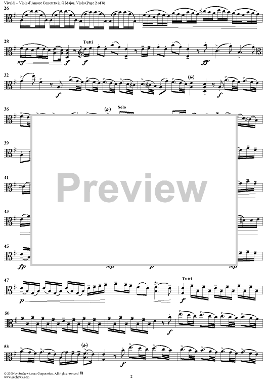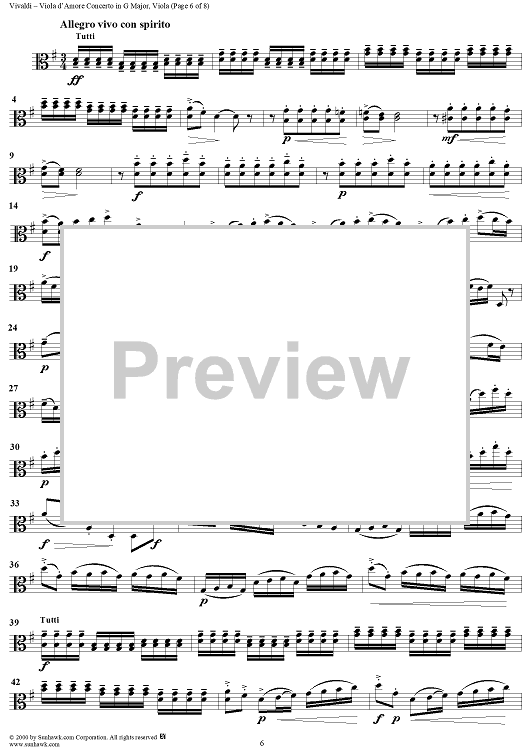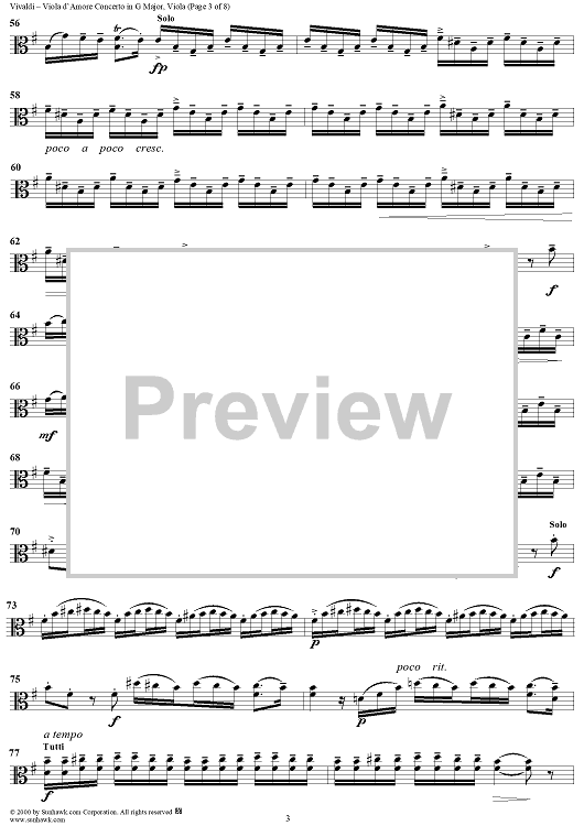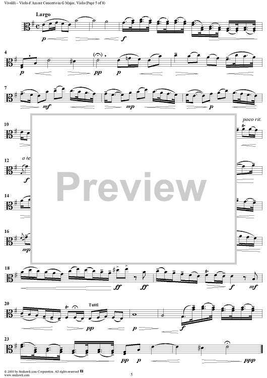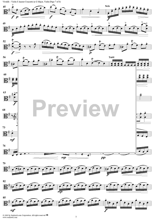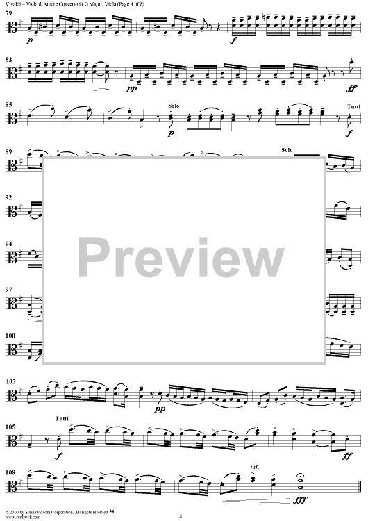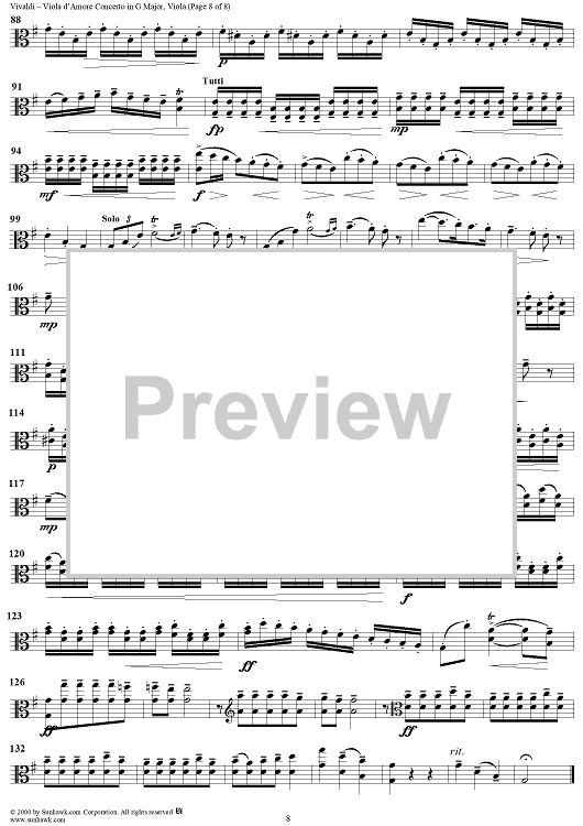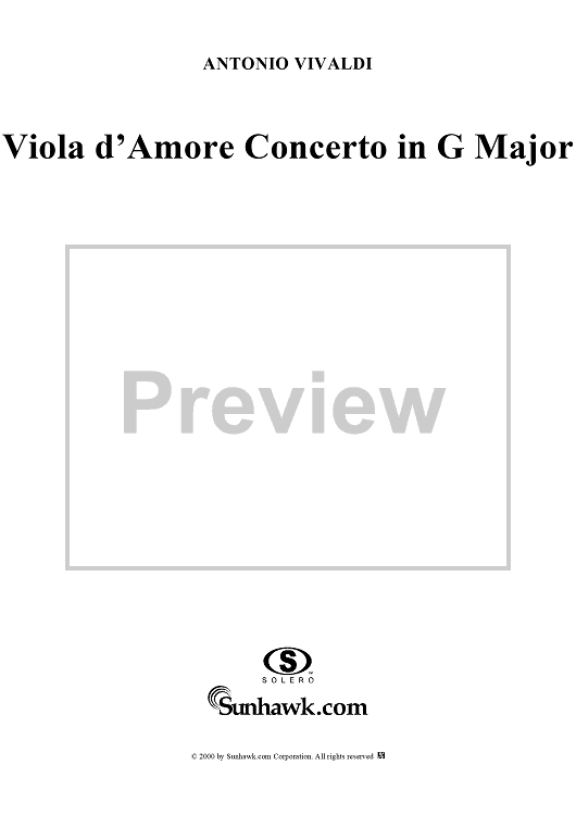 "Viola d'Amore Concerto in G Major - Viola" Sheet Music by Antonio Vivaldi