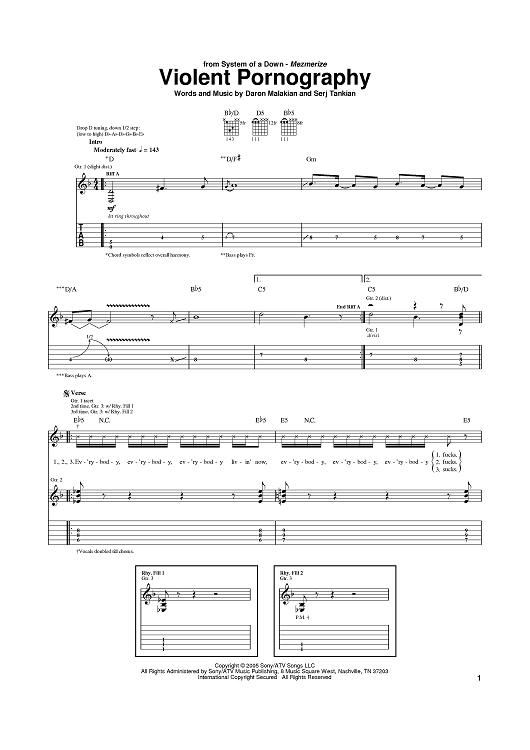 Digital Sheet Music for Violent Pornography by Daron Malakian, System Of A Down, Serj Tankian scored for Guitar Tab; id:385308