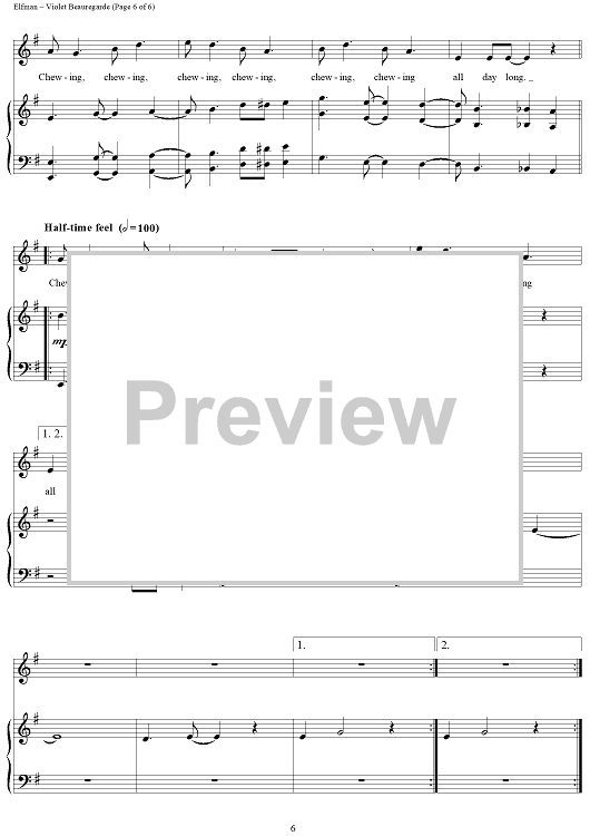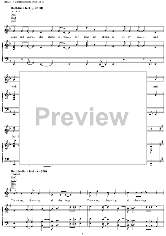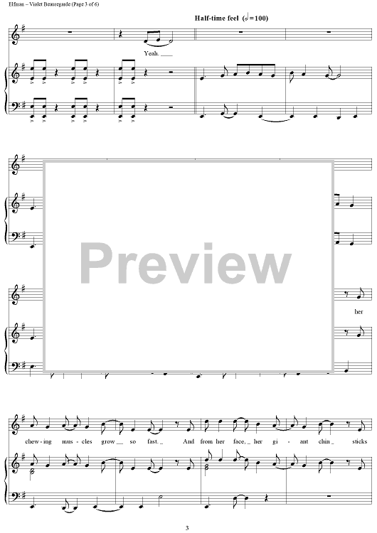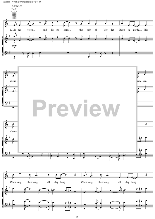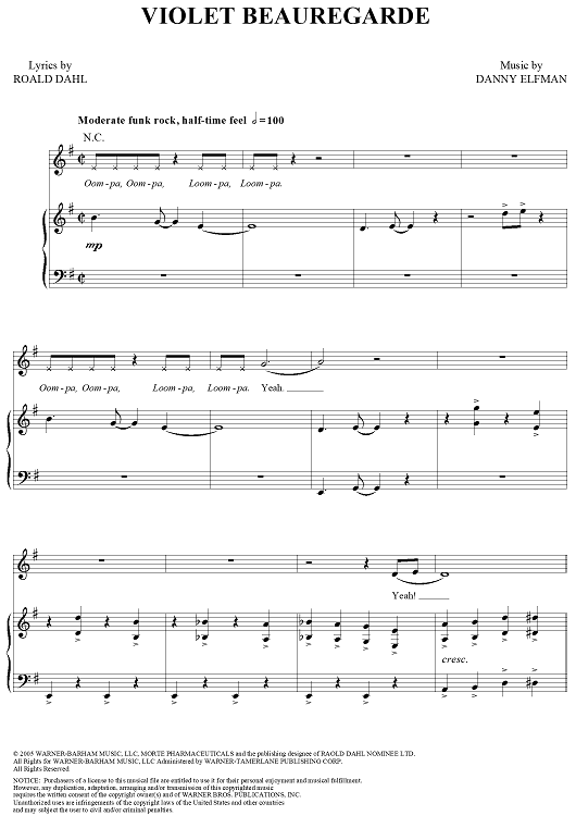 Digital Sheet Music for Violet Beauregarde by Danny Elfman, Roald Dahl scored for Piano/Vocal/Chords; id:314698