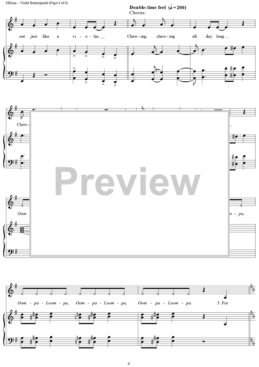 "Violet Beauregarde" Sheet Music by Danny Elfman