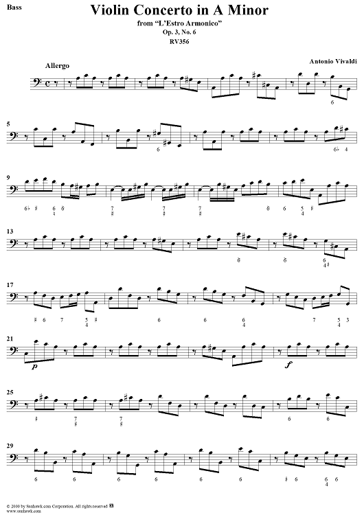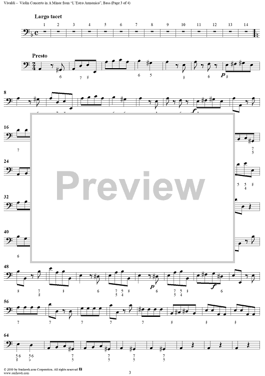 "Violin Concerto in A Minor - Bass" Sheet Music by Antonio Vivaldi