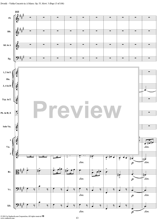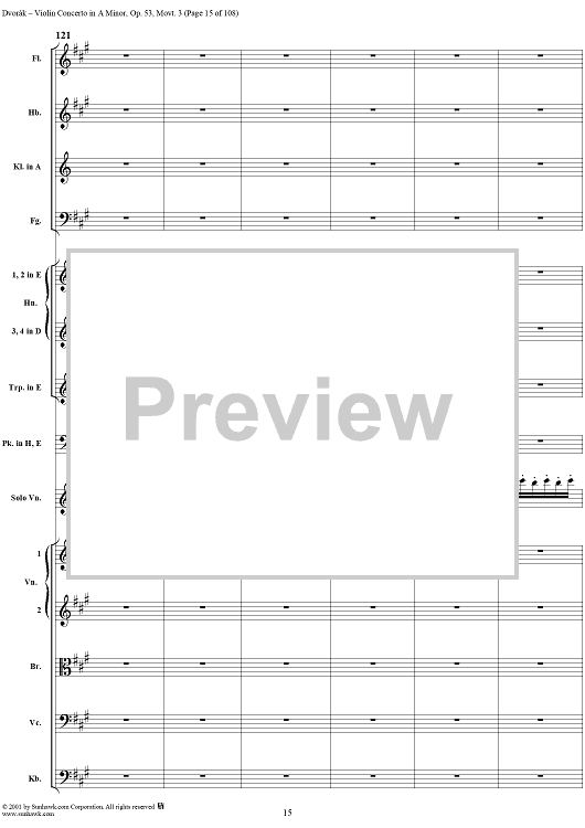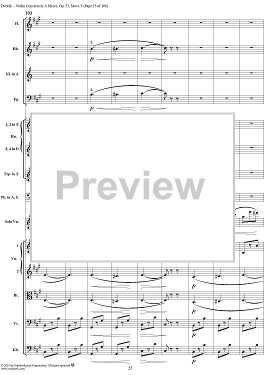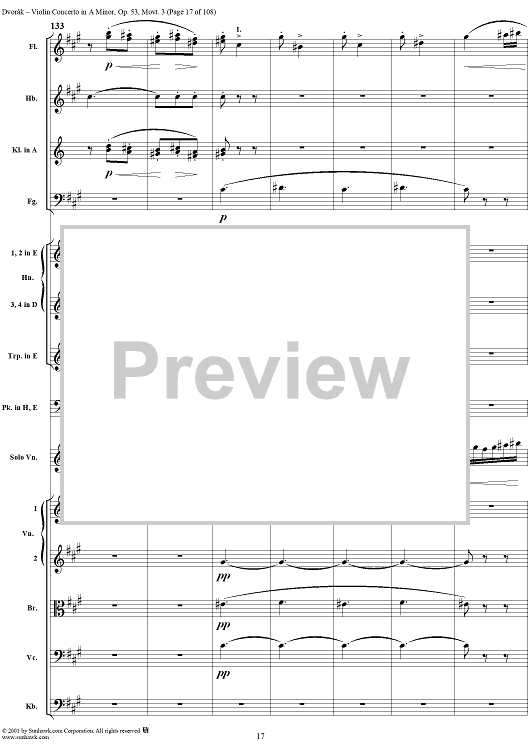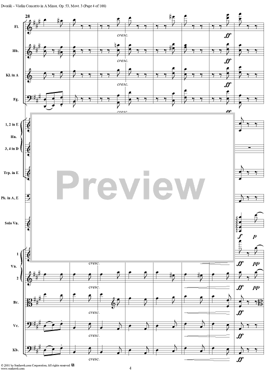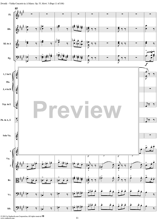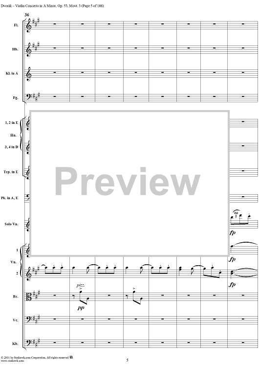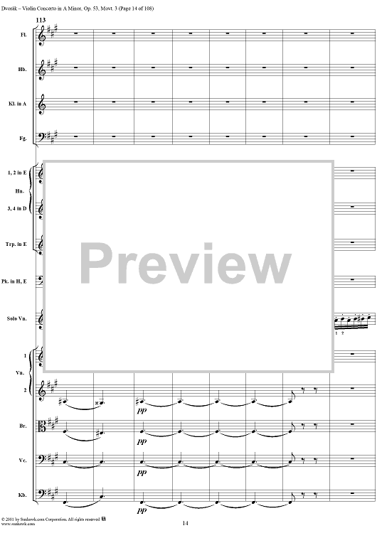 Digital Sheet Music for Violin Concerto in A minor, Op. 53, Movmt. 3, Finale. Allegro giocoso, ma non troppo by Antonín Dvorák scored for Violin/Orchestra; id:271041