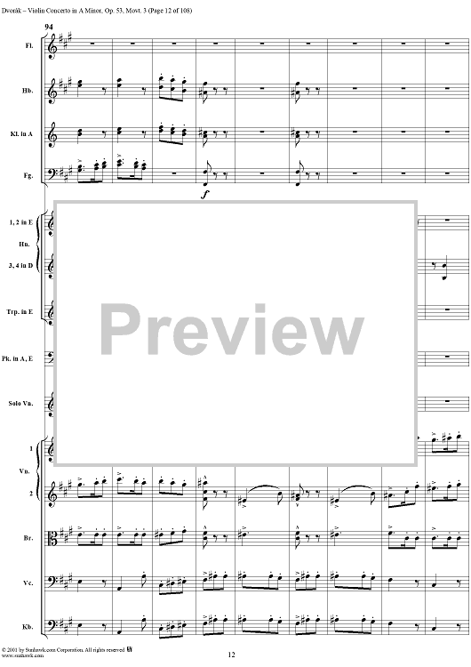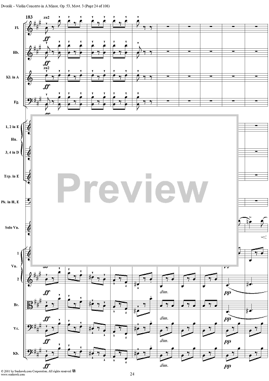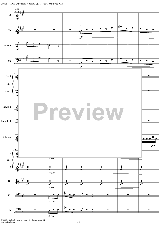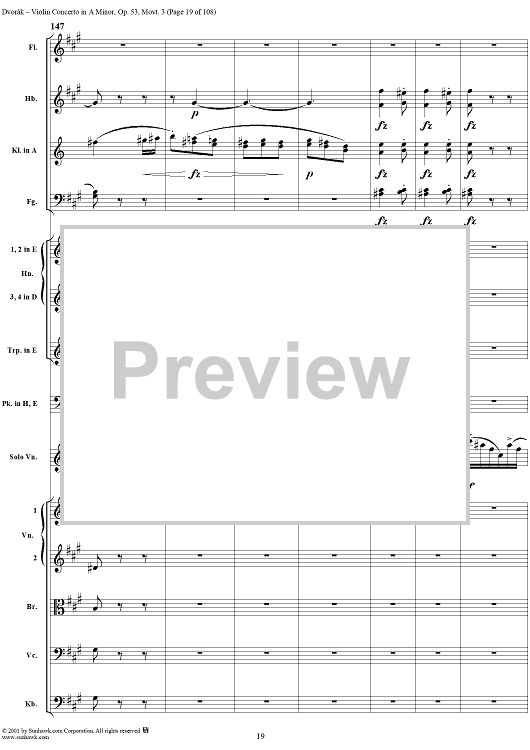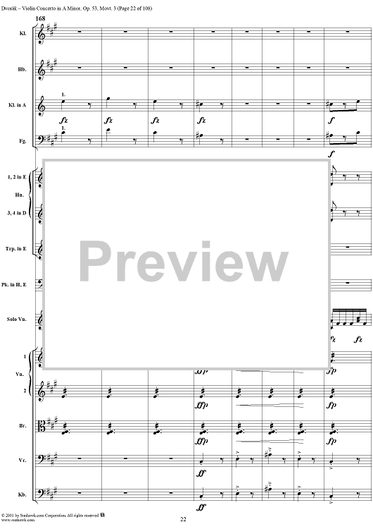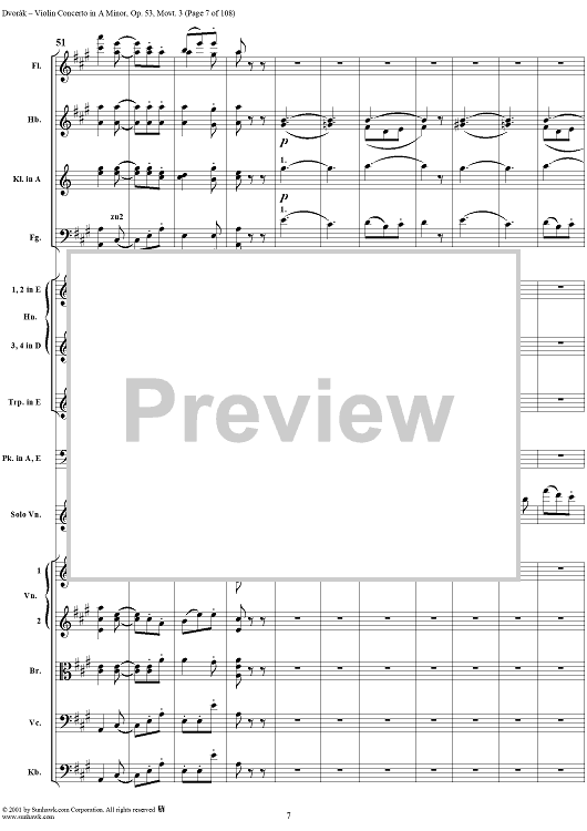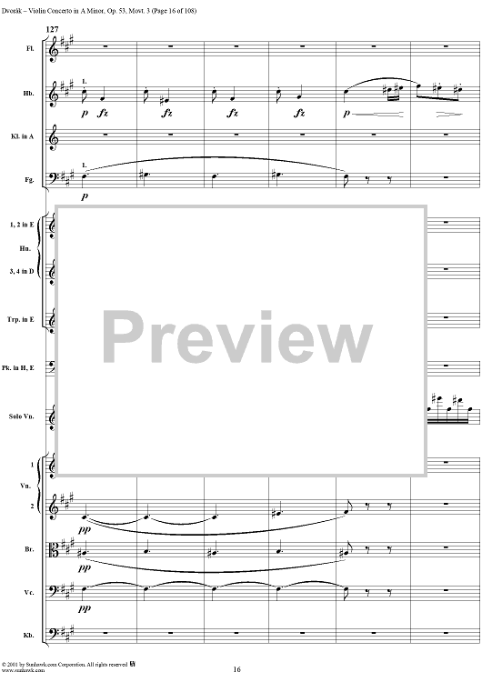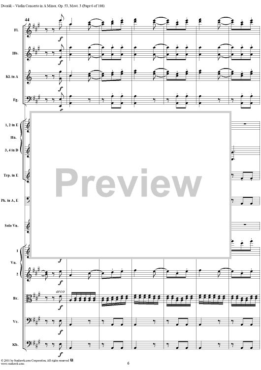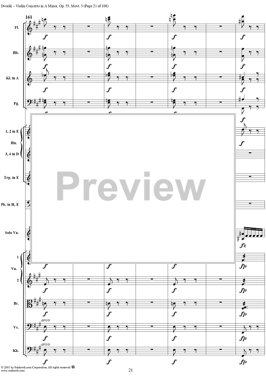 Digital Sheet Music for Violin Concerto in A minor, Op. 53, Movmt. 3, Finale. Allegro giocoso, ma non troppo by Antonín Dvorák scored for Violin/Orchestra; id:271041