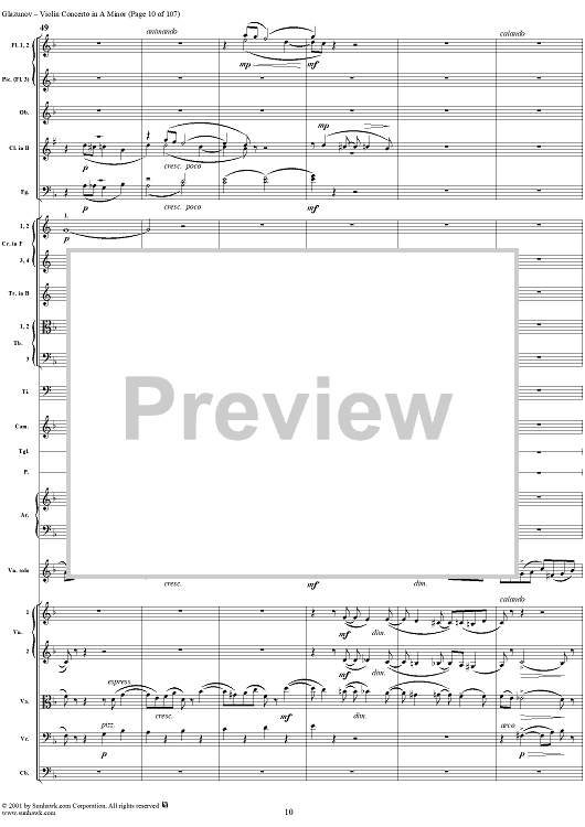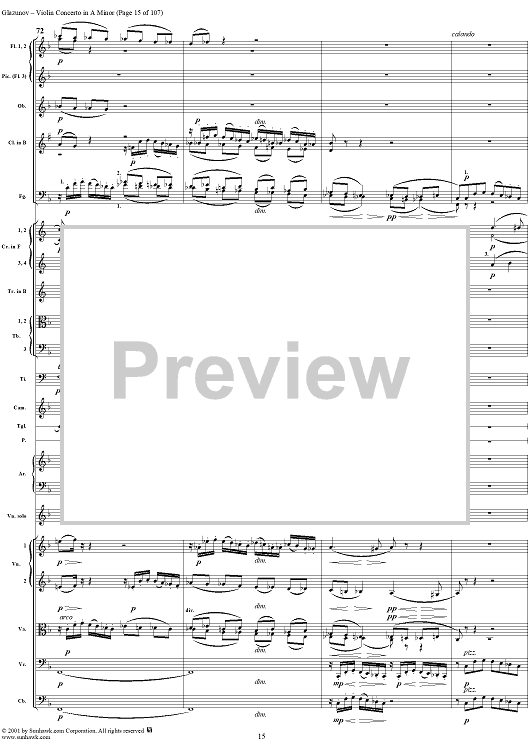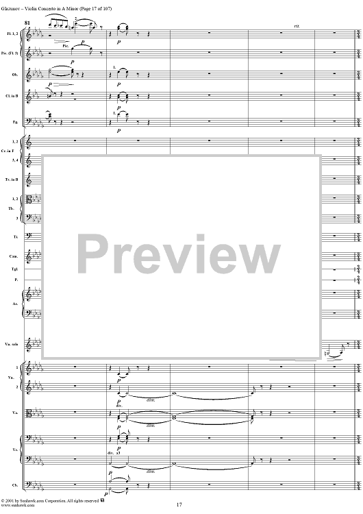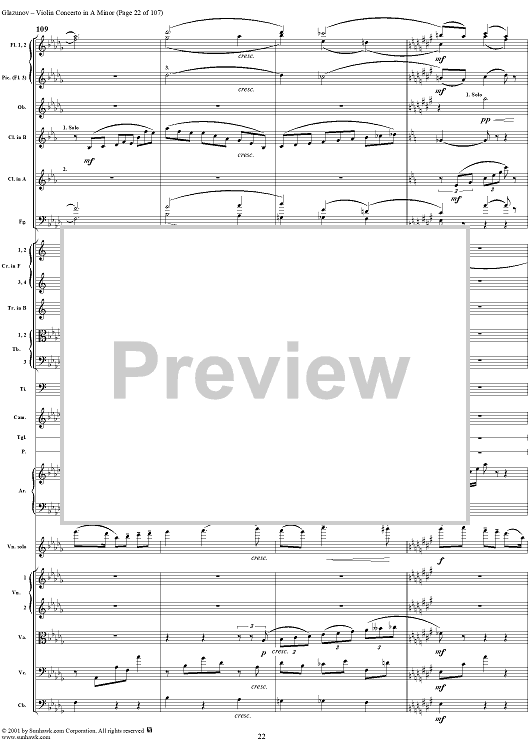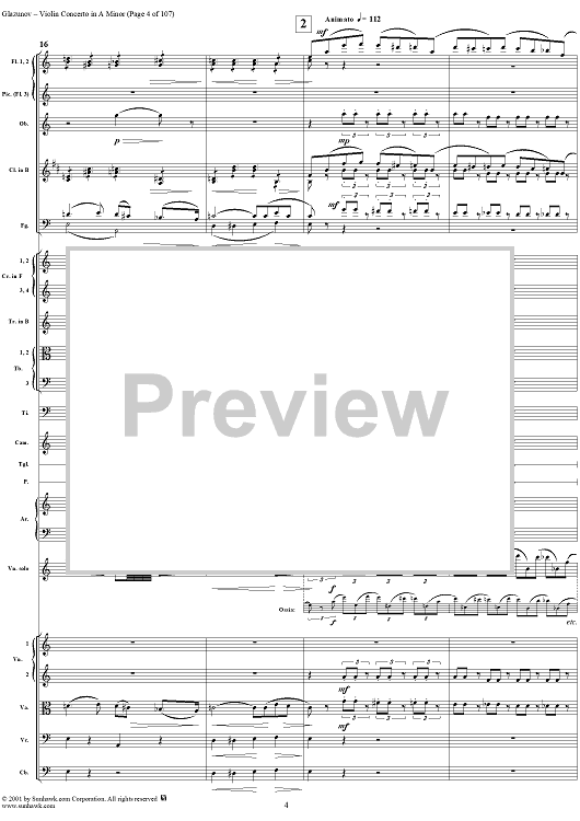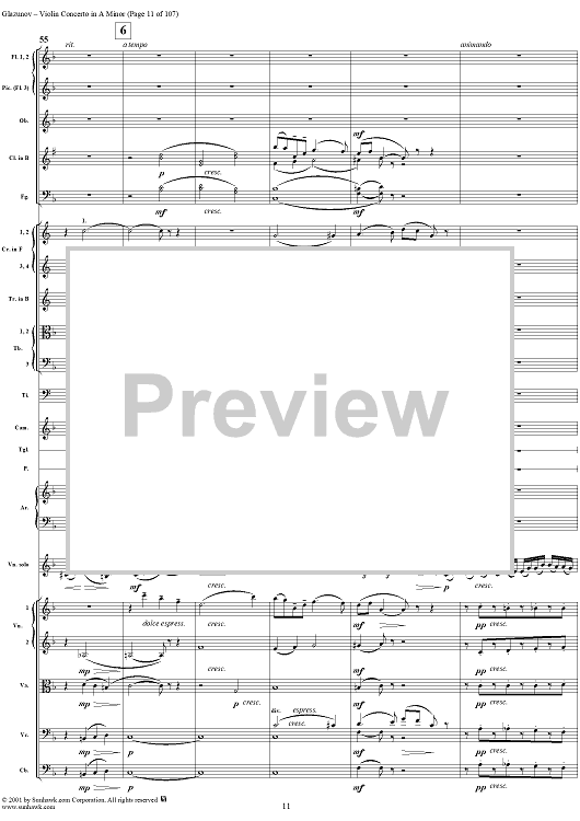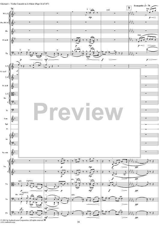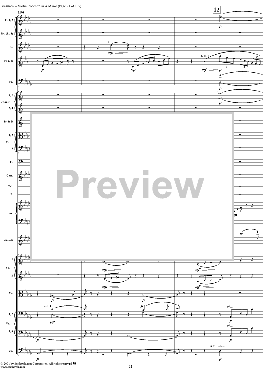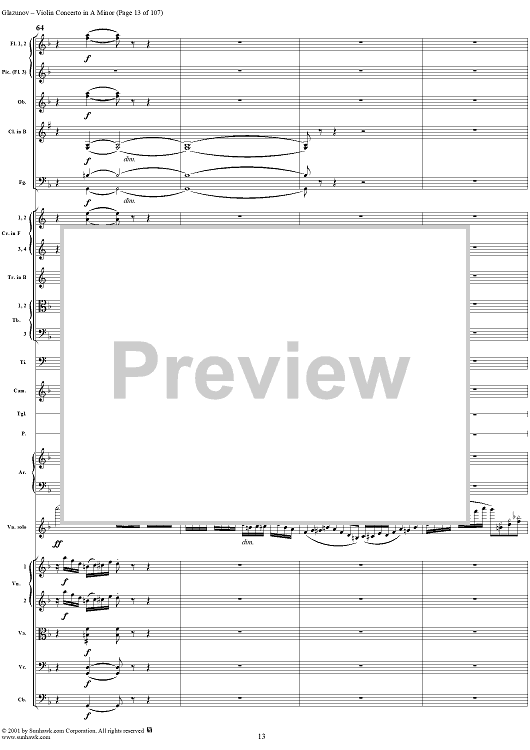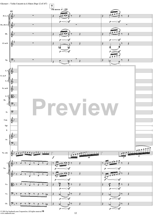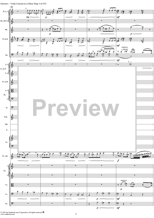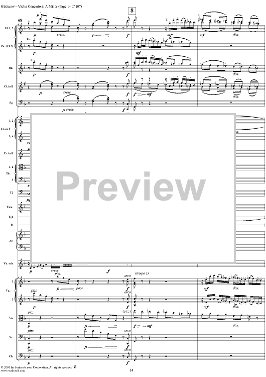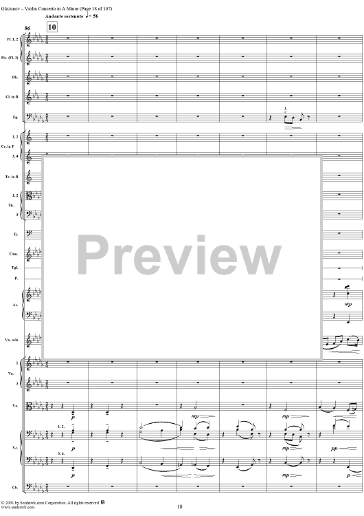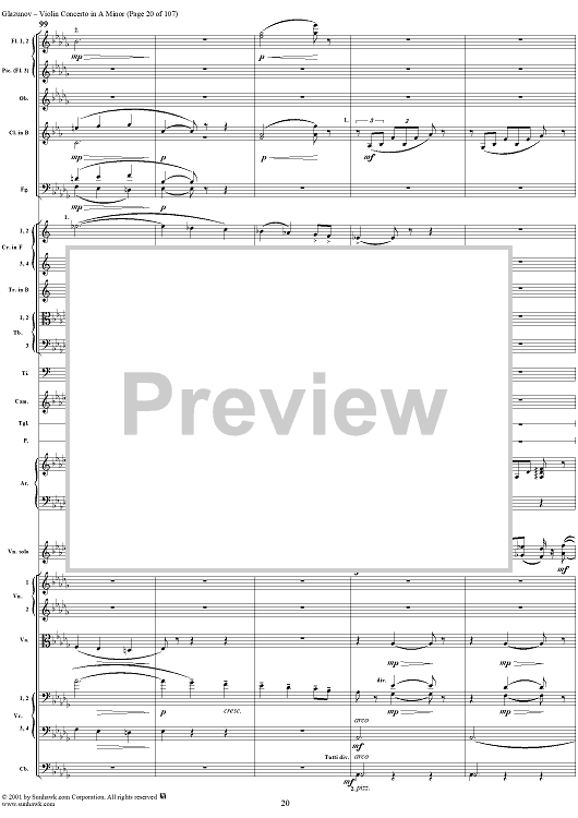 Digital Sheet Music for Violin Concerto in A minor, Op. 82 - Full Score by Alexander Glazunov scored for Violin/Orchestra; id:267477