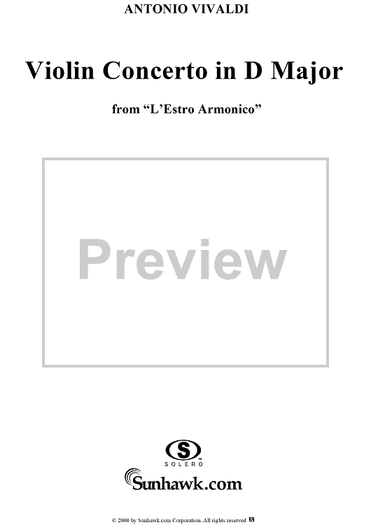 "Violin Concerto in D Major - from "L'Estro Armonico" - Op. 3/9 (RV230) - Violin 1" Sheet Music by Antonio Vivaldi