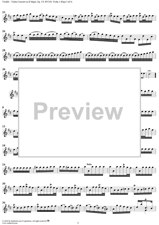 Digital Sheet Music for Violin Concerto in D Major - from "L'Estro Armonico" - Op. 3/9 (RV230) - Violin 1 by Antonio Vivaldi scored for String Orchestra; id:265145